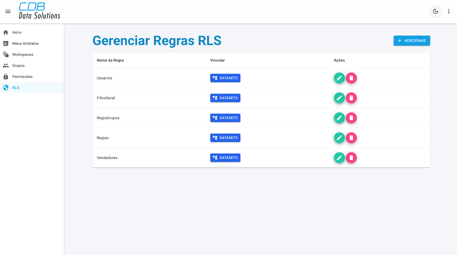 O RLS é atribuído por Dataset